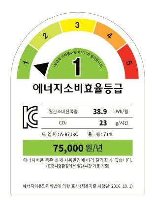 3. **효율 등급 라벨 사진:** 제품 옆면에 붙은 스티커 사진