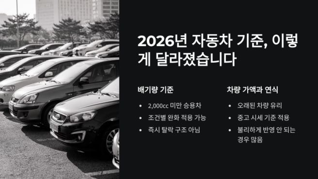 * 꿀팁: 연식이 오래될수록 가액은 급격히 낮아집니다. 5년 이상 된 중고차라면 재산 산정에 큰 타격을 주지 않는 경우가 많습니다.