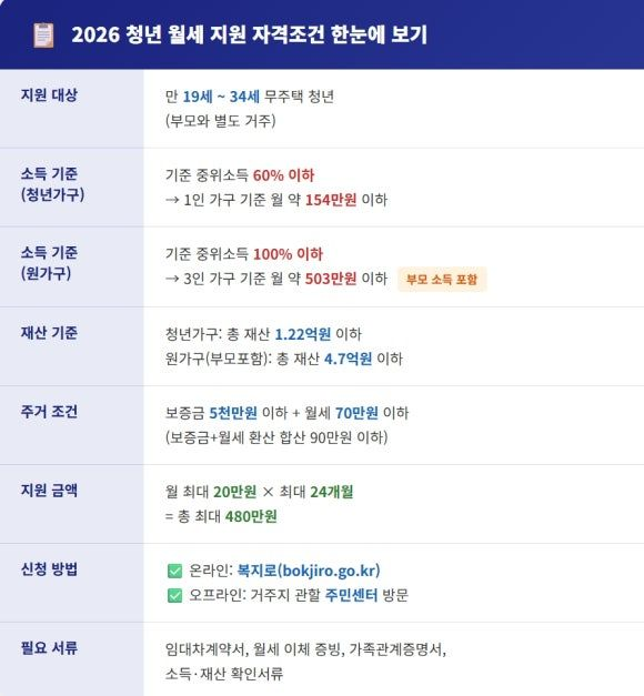 | 🔥 2026 청년월세 특별지원 신청방법 총정리 | 대상·금액·서류 한번에 해결 (0) | 2026.03.24 |