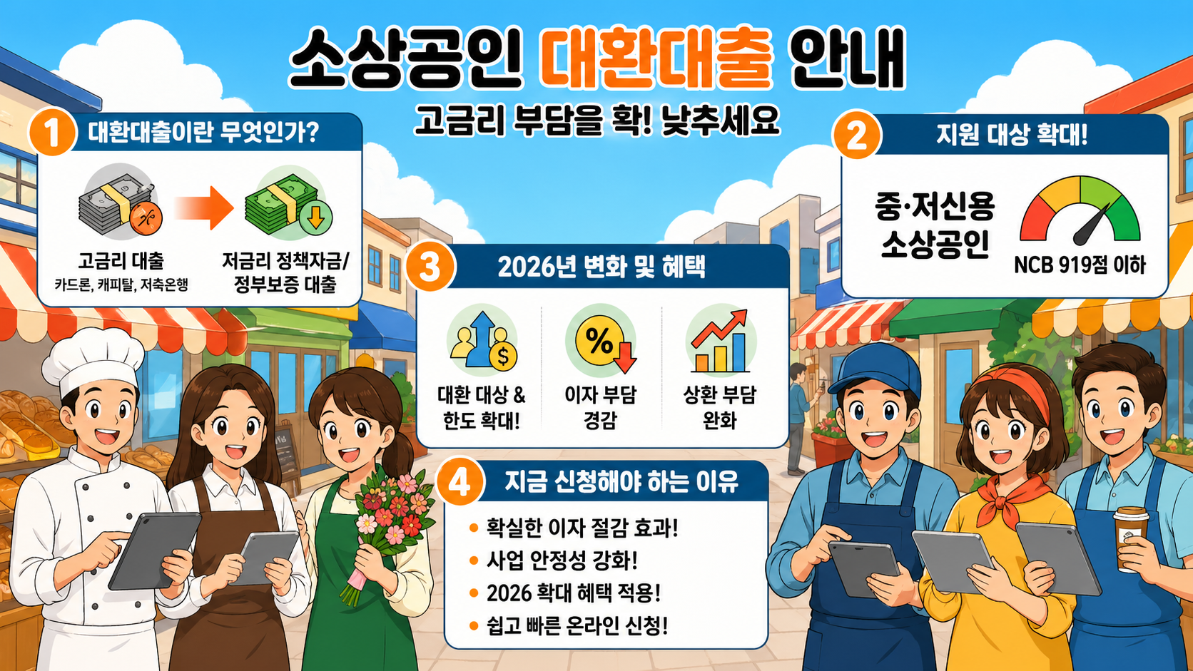 | "오늘 안 하면 끝?" 2026 소상공인 대환대출 신청방법, 5월 예산 소진 전 서두르세요! (0) | 2026.04.28 |