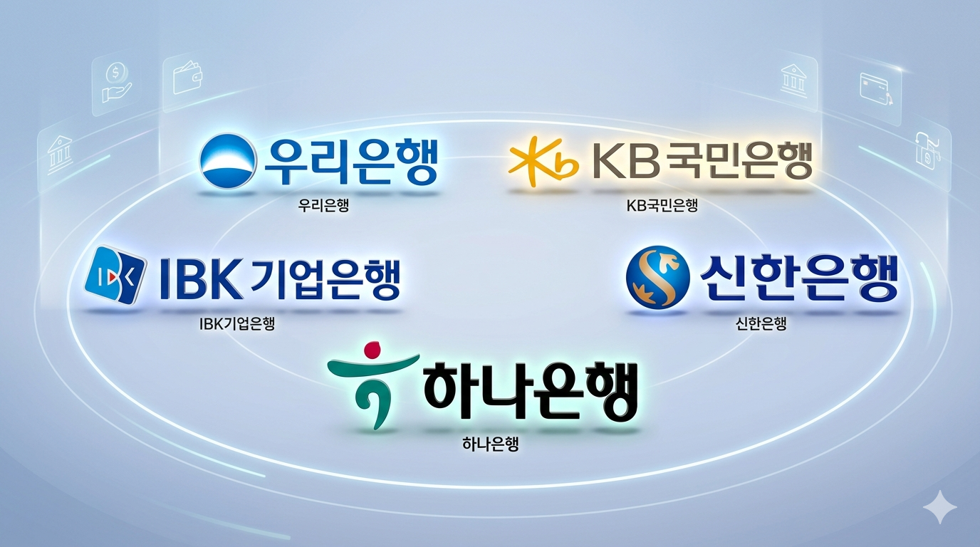 | 시중은행 | KB국민, 신한, 우리, 하나, IBK기업, NH농협, Sh수협 |