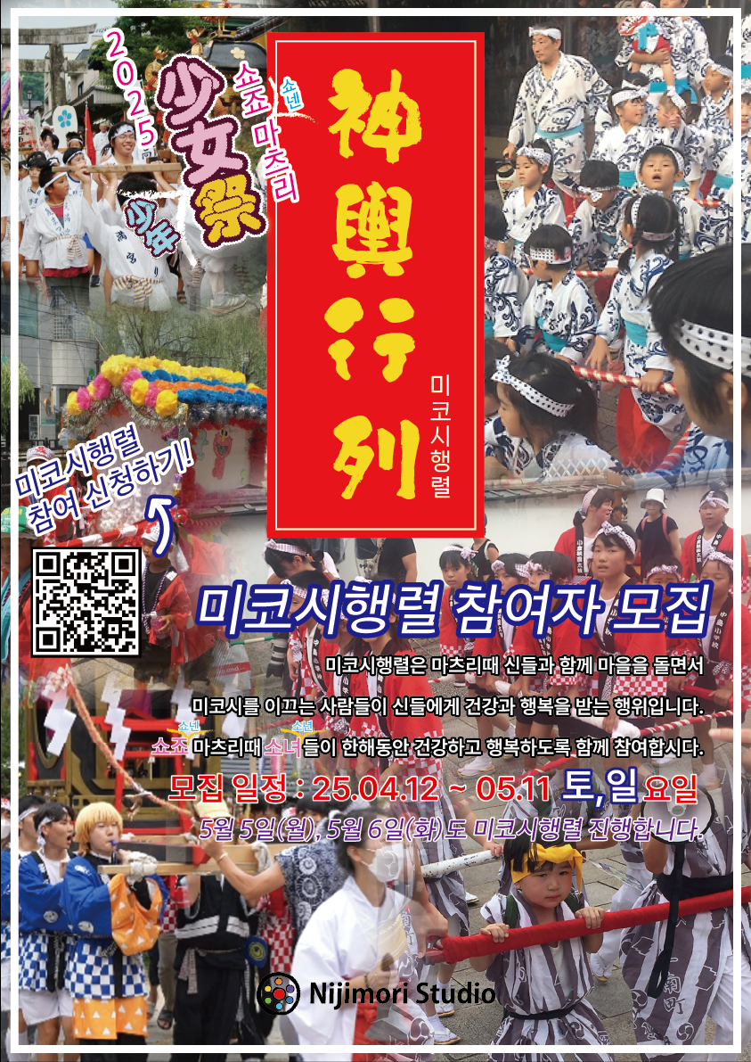 쇼죠마츠리는 일본 전통의 감성을 담은 봄 축제입니다. '쇼죠(少女)'는 '소녀'를 의미하며, 니지모리 스튜디오라는 아름다운 일본식 공간에서 봄을 맞아 열리는 특별한 행사입니다.