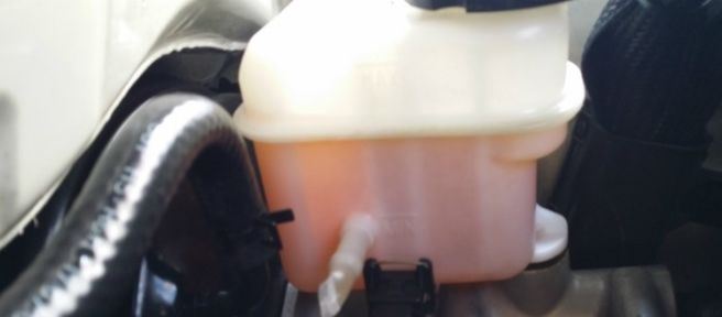 - 엔진룸을 열어 브레이크액 탱크(대부분 노란색 캡)를 찾습니다.